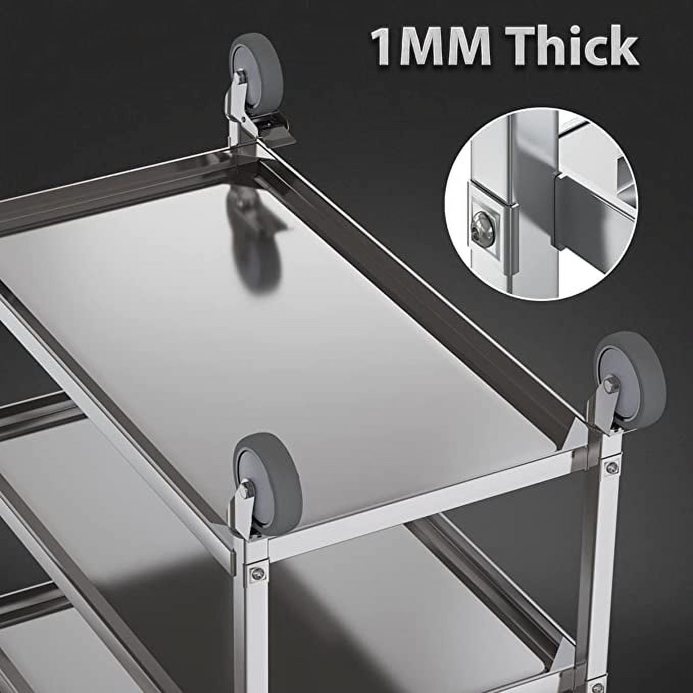 Amarite 3-tier Stainless Steel Cart with Wheels, Home, Kitchen Serving Cart, 400 Pounds, 1mm Thick, Silver
