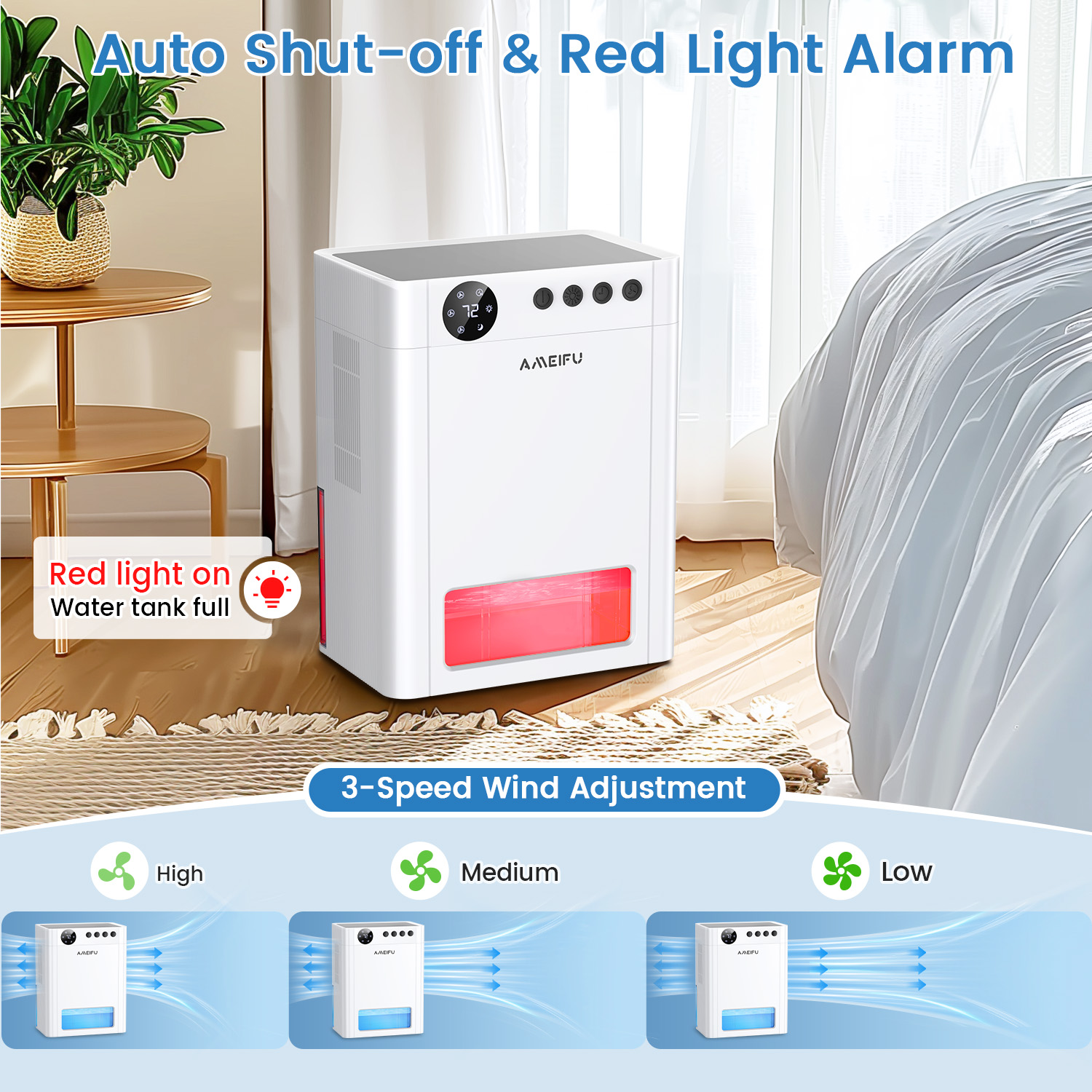 AMEIFU 4L Dehumidifier for 1000 Sq.ft, Quiet Dehumidifier with Auto Shut off & Auto Defrost