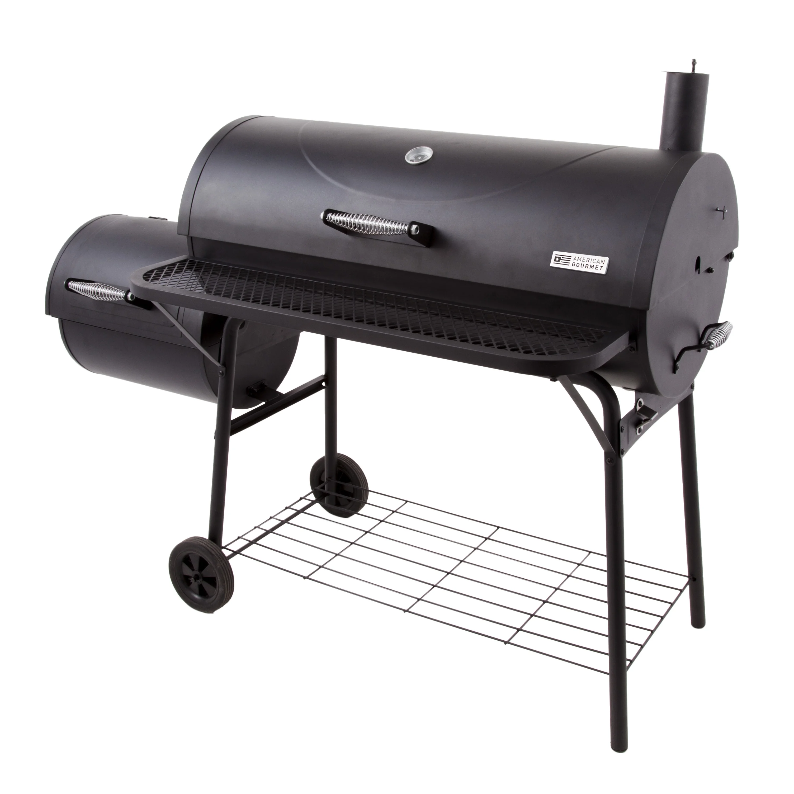 $249.37Get a traditional smoking and grilling experience with the large-capacity American Gourmet® 1280 Offset Smoker by Char-Broil®. Three porcelain-coated grates and a secondary chrome-plated grate help you get the most out of its massive 1,280 sq. in. total cooking surface. The barrel-style smoking chamber has a vertical smokestack and multiple dampers for heat and smoke control and a height-adjustable charcoal tray to regulate temperatures when charcoal grilling. There’s a front shelf for work space and a firebox door for easy ash removal.