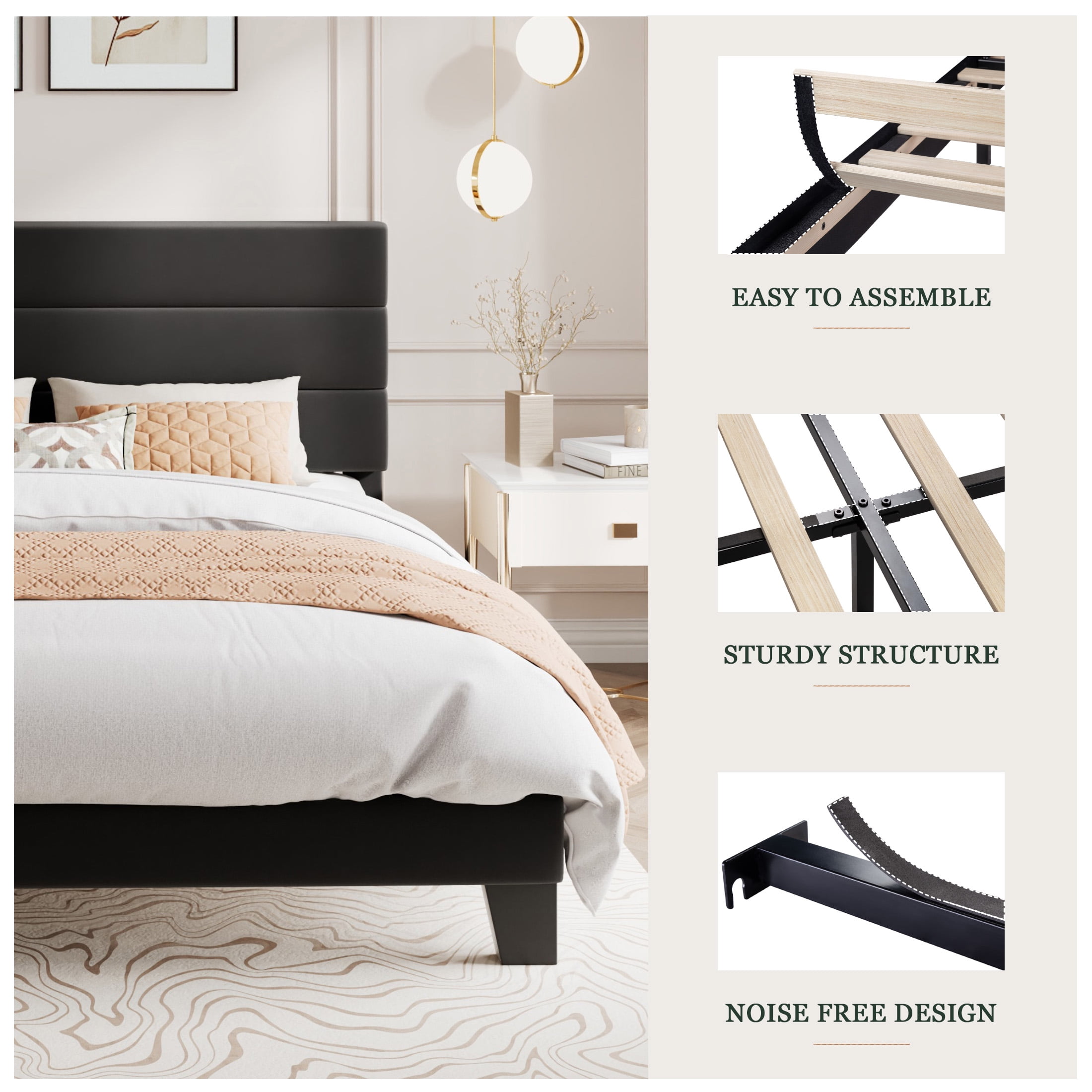 Amolife Queen Size Upholstered Platform Bed Frame with Adjustable Velvet Headboard, Black
