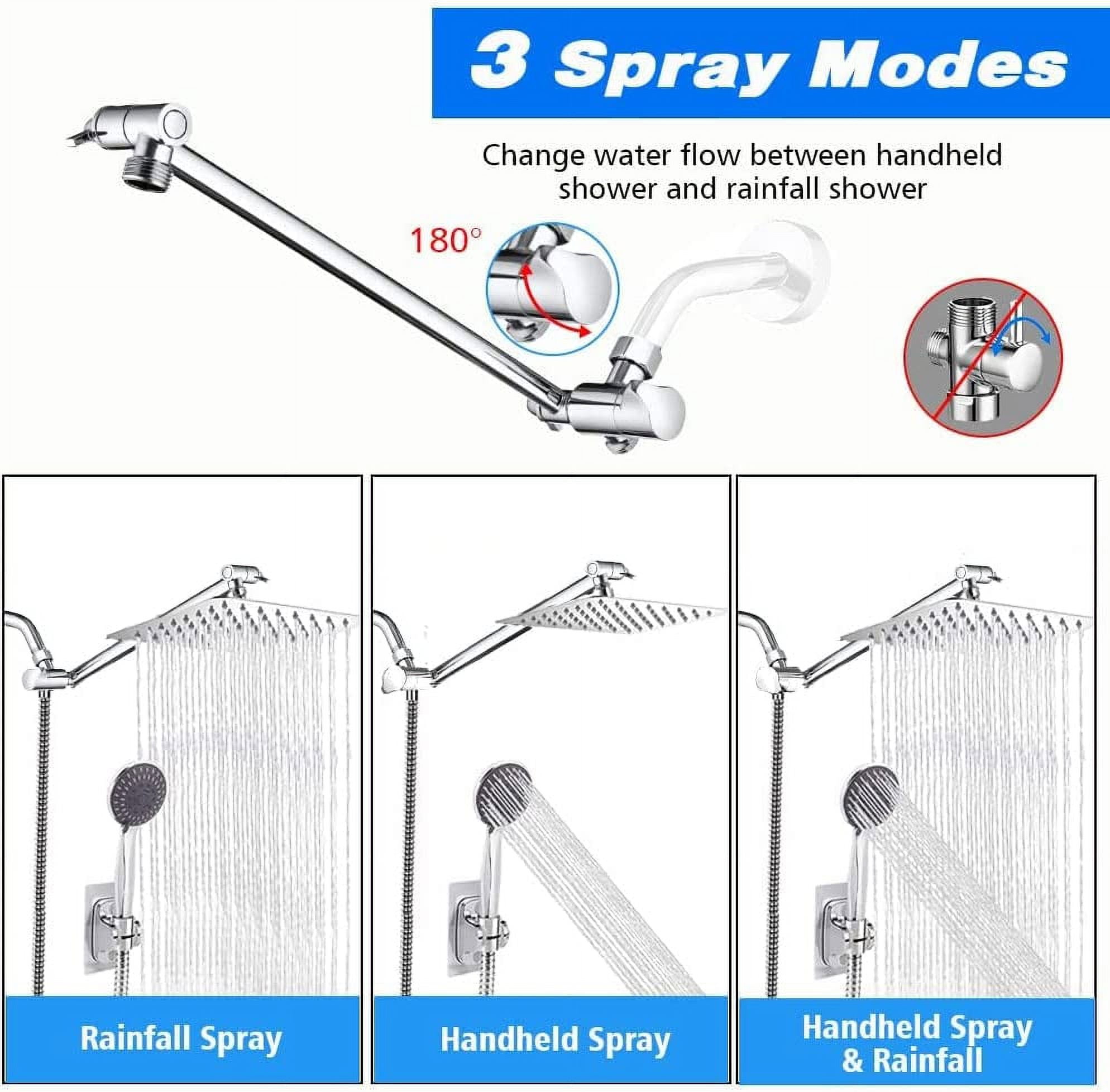 $55.03High Pressure 5-Setting 3-Way showerheads & handheld showers combo with 12” shower head extension arm, and 12 inch large square rain shower head, waterfall full body coverage, which offers you the Ultimate Shower Experience! This shower head combo is very easy to install, no need to call a plumber.