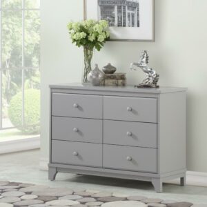 Angel Line Madison 6 Drawer Double Dresser, Gray, Modern Design, Solid Wood