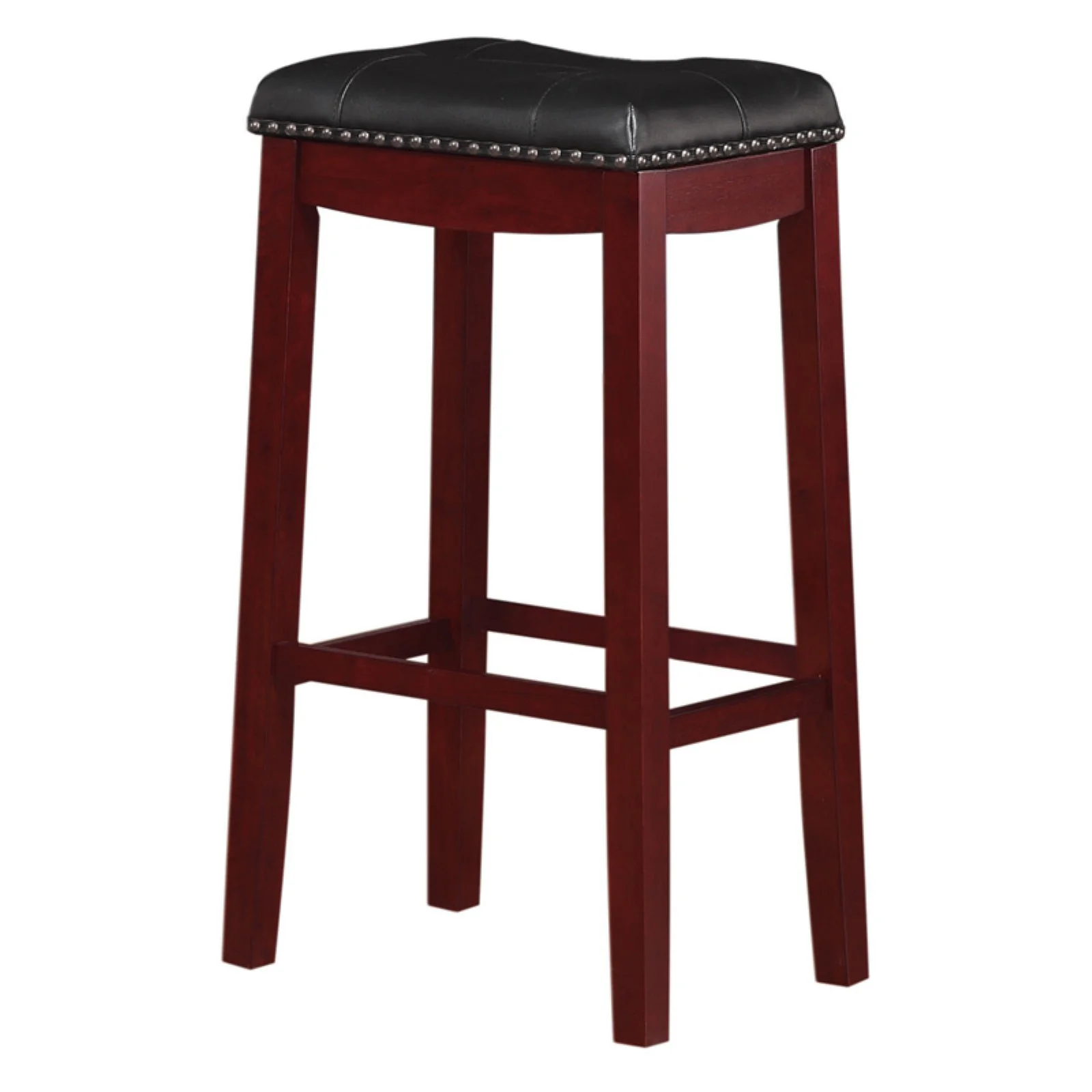 $55.89Cozy up to the bar with the Angel Line Cambridge 29 in. Padded Saddle Bar Stool with Nailhead Trim. Boasting a sturdy wood frame and soft faux leather seat, the design is sold in a selection of available finishes to complement your space. The plush saddle seat is adorned with a bright nailhead trim for a touch of additional style.
