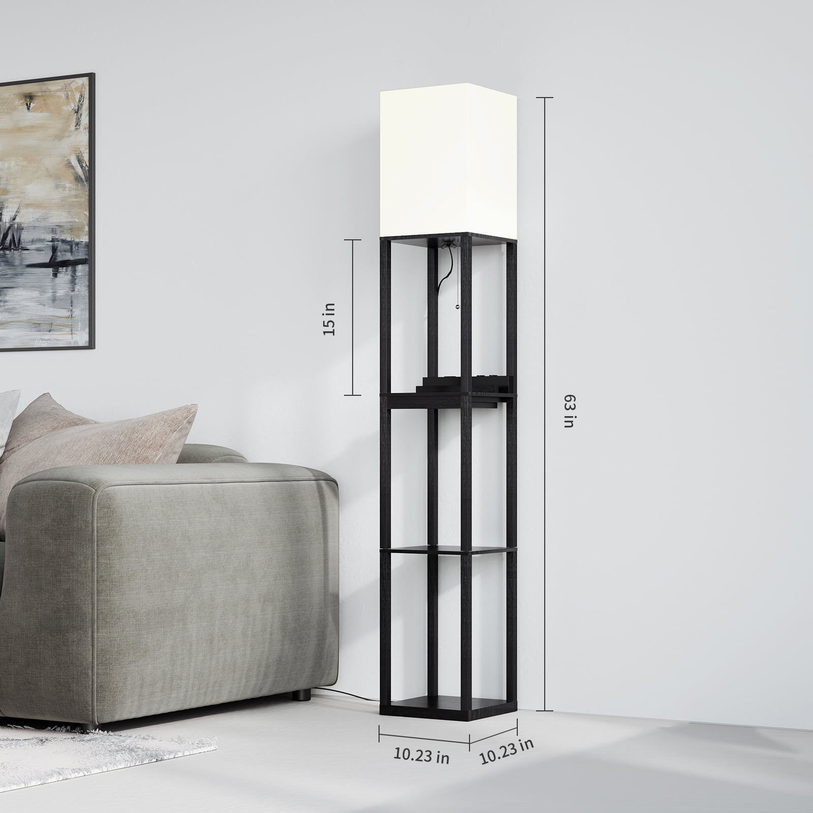 $56.75AOHAO Floor Lamp with Shelves, Modern Dimmable Standing Lamp with 1 Drawer and 2 USB Ports & 2 Power Outlet, Solid Wood Corner Tall Bookshelf Lamp for Living Room and Bedroom Product Dimensions 10.23″D x 10.23″W x 63″H Special Feature Adjustable Color Temperature, Dimmable, Pull chain, Durable, Easy Assemble, Sturdy, Fast Charging Light Source Type LED Finish Type Wood Veneer Material Wood,fabric,Iron Room Type Office, Bedroom, Living Room, Study Room Shade Material Fabric Base Material E26 Recommended Uses For Product Living Room Bedroom Reading Study Office Power Source Corded Electric Shape Square Controller Type Pull switch Switch Type Pull Chain