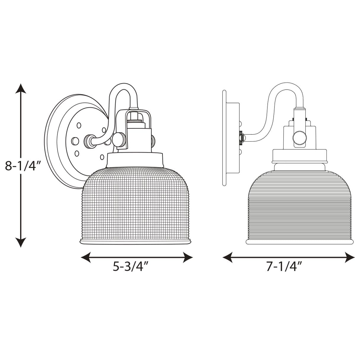 $52.63Allow a soft, vintage glow to envelop you in an aura of calmness free from work tasks and home chores with the Archie collection’s statement-making one-light bath vanity fixture. This striking light creation features a gorgeous Venetian bronze finish that covers the distinguished, round backplate. Small, smooth knobs add an extra element of subtle decorative detail as a refined arm curves out from the center of the backplate to gently support the vintage light base. The metal details artistically securing the light base to the curved arm and the glass shade produce a design that fondly recalls the silhouettes of antique street lights for a bonus boost of vintage flavor. Eyes hungry for visual texture will feast upon the stunning, double prismatic glass shade that becomes the focal point of the impressive showpiece. Mount the unique fixture facing up or down, around or above a bathroom mirror to banish shadows from your face as you prepare for the day or for a fun evening out. For ideal illumination, the light fixture uses one medium base bulb that is sold separately (100w max – LED, CFL, Halogen, or incandescent). With the capability to be fully dimmable with a dimmable bulb and having the approval to be installed in damp locations, this bathroom lighting piece offers versatility when it comes to finding a place in your home décor vision. The light fixture’s finely crafted design and outstanding versatility make it an ideal choice for any bath and vanity setting in farmhouse, vintage electric, urban industrial, rustic, craftsman, or coastal interiors. It’s time to breathe new life into the mundane every day with timeless and truly transformative bathroom lighting. Make your purchase today to begin your journey to a whole new lighting experience. Progress Lighting products are designed for exceptional quality, reliability, and functionality.