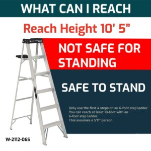 Louisville Ladder 6′ Aluminum Step Ladder, 10′ Reach, 250 lbs Load Capacity, W-2112-06S