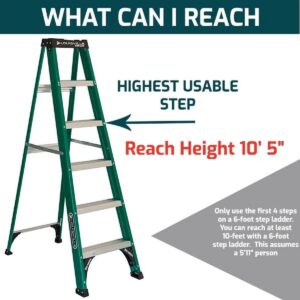 Louisville Ladder 6′ Fiberglass Shelf Ladder, 10′ Reach, 300 Lbs Load Capacity, FH1006