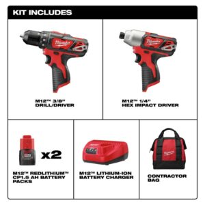 Milwaukee 2-Tool M12 12V Lithium-Ion Drill/Driver and Impact Driver Cordless Tool Combo Kit