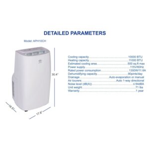 Airemax 15000 BTU ASHRAE (10000BTU DOE) 600 Sq. Ft. Coverage Portable Air Conditioner with Heat