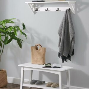 Alaterre Furniture Bethel Acacia Wood 40″W Bench and Coat Hook with Shelf, Natural