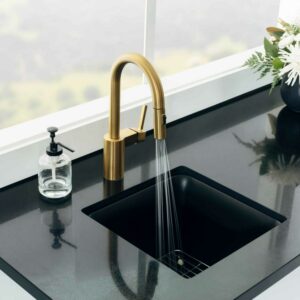 Moen 7864EWBLS Sleek Motionsense Wave Sensor Touchless One-Handle High Arc Pulldown Modern Kitchen Faucet Featuring Power Clean, Black Stainless