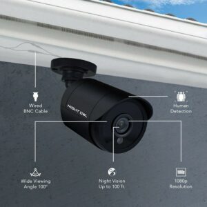 Night Owl Wired 1080p HD Surveillance Bullet Cameras, Indoor Outdoor, Night Vision, Black, 2-Pack, Add to a Compatible Night Owl Recorder