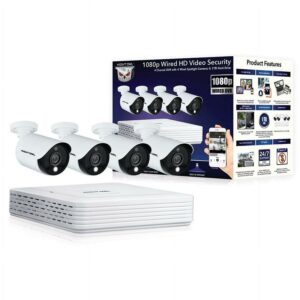 Night Owl Bluetooth 4 Channel 4K Wired DVR, 4 Wired Light Cameras & 1TB HDD