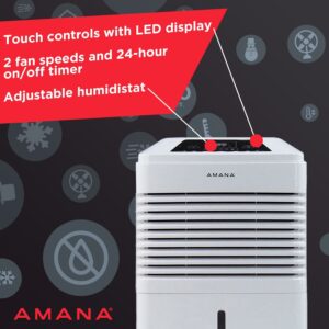 Amana 48 Pt 1,800 Sq Ft Dehumidifier in White – Adjustable Humidistat, Automatic Shut-off
