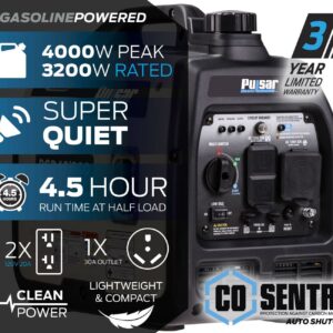Pulsar G1200SG Portable Gas-Powered Generator with Carrying Handle, 1200W, Black/Gray