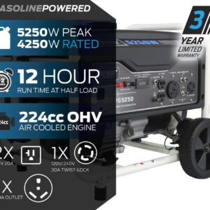 Pulsar G1200SG Portable Gas-Powered Generator with Carrying Handle, 1200W, Black/Gray