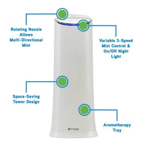 PureGuardian Humidifier Cool Mist Ultrasonic Tower with Aroma Tray, 1.5 Gallon H3200WAR