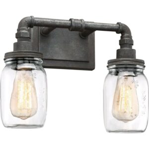 Quoizel SQR8602RK Squire 14″ 2-Light Clear Glass Bath Vanity in Rustic Black