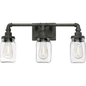 Quoizel SQR8603RK Squire 21.5″ 3-Light Clear Glass Bath Vanity in Rustic Black