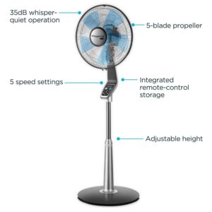 Rowenta Turbo Silence Standing Floor Fan with Remote, 53 Inch, Portable, 5 Speeds, VU5670