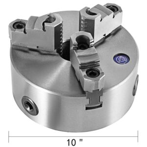 VEVOR K11-250 Lathe Chuck 10 inch 3 Jaw, Self Centering Chuck Milling Hardened Steel, Internal External Grinding for Lathe Drilling Milling Machine