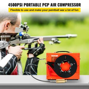 VEVORbrand PCP Air Compressor, 4500PSI Portable PCP Compressor, 12V DC 110V/220V AC PCP Airgun Compressor Auto-stop, w/ Built-in Adapter, Fan Cooling, for Paintball, Air Rifle, Mini Diving Bottle