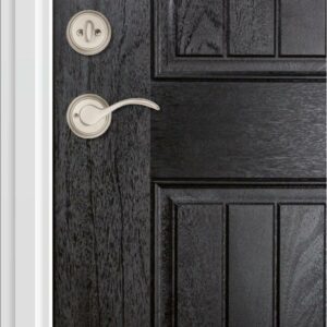 BALDWIN Prestige Wesley Single Cylinder Satin Nickel Door Handleset with Alcott Door Knob Featuring SmartKey Security