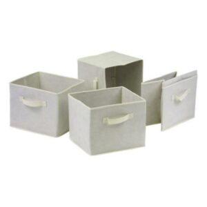 Winsome Verona 5-Pc 4-Tier Storage Shelf with 4 Foldable Fabric Baskets, Walnut & Beige