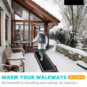 BENTISM Snow Melting Mat Heated Walkway Mat 20” x 60” Connectable w/ Power Cord