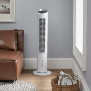 Better Homes & Gardens Programmable LED Display Tower Fan with Air Cooler and Remote, 40″ White