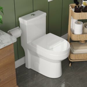 DeerValley DV-1F52102 Elongated One Piece Toilet with Comfort Chair Seat, Bowl Height 15 3/4″, Dual Fulsh, 1.6 GPF, White