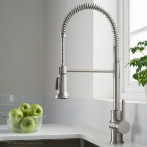 Kraus Oletto Tall Modern Pull-Down Single Handle Kitchen Faucet in Spot Free Stainless Steel