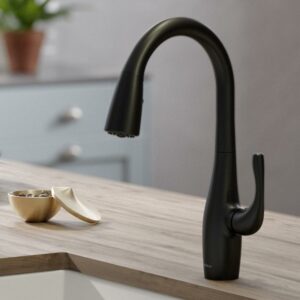 Kraus OlettoTall Modern Single-HandleTouch Kitchen Sink Faucet with Pull Down Sprayer in Matte Black