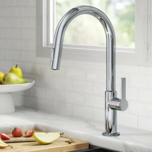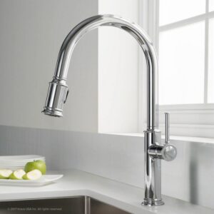KRAUS Sellette™ Single Handle Pull Down Kitchen Faucet with Dual Function Sprayhead in Chrome Finish