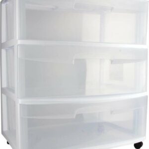 Sterilite At Home 3 Drawer Wide Storage Cart Container with Casters, 3 Pack