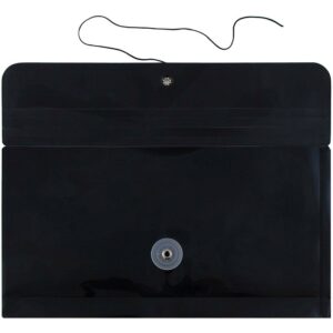 JAM Paper #10 Plastic Business Envelope with Button and String Tie Closure, 5 1/4 x 10, Black, 108/pack