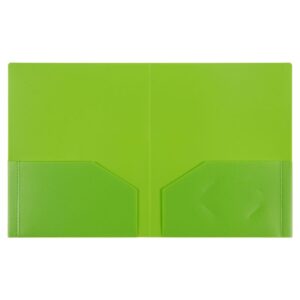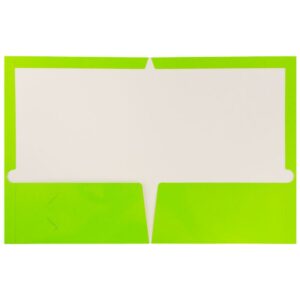 JAM Paper Heavy Duty Plastic Two Pocket Presentation Folders, Lime Green, 108/pack