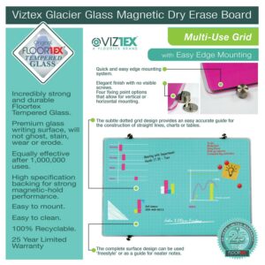 Viztex Glacier Magnetic Glass Dry Erase Board. Multi-Purpose Grid 24″ x 36″ – Light Teal