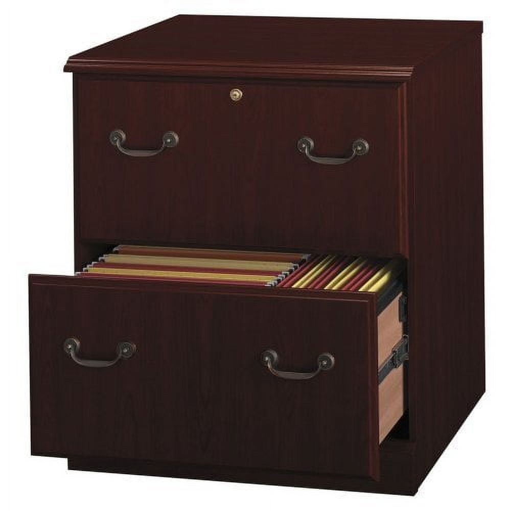 $250.58Original price was: $250.58.$92.81Current price is: $92.81.A staple of the Arlington Collection, the 2 Drawer Lateral File Cabinet from Bush Business Furniture organizes paperwork with room to spare. Two file drawers accommodate letter, legal, or A4-size documents and operate on full-extension ball bearing slides for easy reach to materials. The upper drawer is lockable to protect sensitive files and valuable items. The filing cabinet’s Open Safe Drawers are designed to extend one at a time for maximum stability on any surface. The rich finish, Antique Brass pulls, and decorative edge details convey a sense of tradition and old-world charm that you will love for years to come. The height of the large filing cabinet matches that of Arlington desks (sold separately) for an extended work surface when placed side by side. This 2 Drawer File Cabinet meets ANSI/BIFMA standards for safety, durability, and performance and is backed by a 6 Year Warranty. Features: Durable thermally-fused laminate surface resists scratches and stains Two file drawers accommodate letter, legal or A-4 size files Full-extension ball bearing slides on file drawers for easy access to contents Interlocking drawer mechanism reduces likelihood of tipping Upper drawer locks to secure sensitive files and items Convenient desk-height design demonstrates an extended work surface Traditional Harvest Cherry finish accented with Antique Brass drawer pulls Accent molding on base highlights classic design Backed by a 6-Year Manufacturer’s Warranty See the full collection of coordinating items available