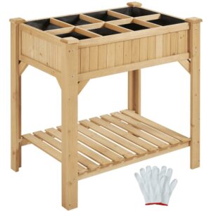 ALden design 8-Pocket Wood Elevated Garden Planter with Fabric Liner, Light Brown