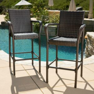 Delfina Outdoor Mix Mocha Wicker Barstool – Set of 2