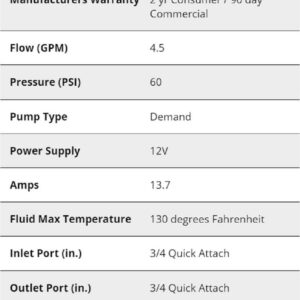 Fimco High Flo 5151088 High Performance Sprayer 12V Demand Pump, 4.5 GPM, 60 PSI