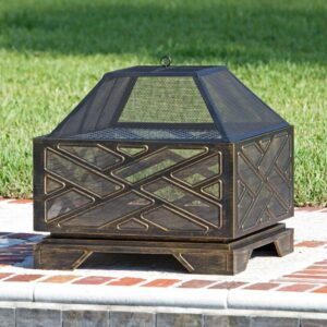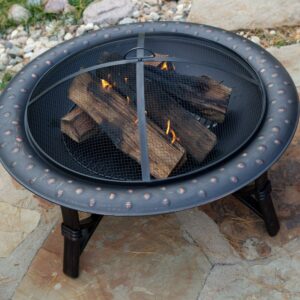 Fire Sense Degano Outdoor Firepit Backyard Fireplace included Wood & Cooking Grate Black Copper 26″