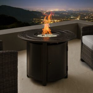 Fire Sense Portable Fire Pit LPG Gas Outdoor Firepit Includes Dark Bronze Propane Stand Round 15″