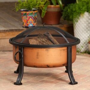 Fire Sense Lumina Firepit Copper Finish Fire Bowl Spark Screen & Screen Lift Tool Included-Round-24″