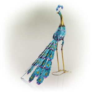 Alpine Corporation 26″ x 17″ x 37″ Metal Peacock Garden Statue, Multicolor
