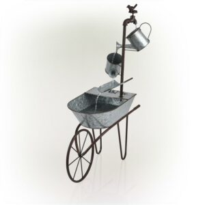 Alpine Corporation 29″ x 13″ x 36″ Rustic Metal Wheelbarrow Fountain Yard Decor, Silver