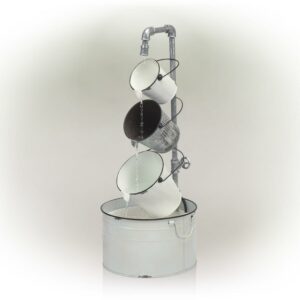 Alpine Corporation 33″ Tall Rustic Metal Pails Fountain Yard Decoration, White
