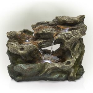 Alpine Corporation 3 Tier Rainforest Tabletop Fountain w/ LED Lights, 10 Inch Tall