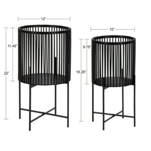 Kate and Laurel Paynter Modern 2-Piece Metal Floor Planter Set with Foldable Stand, Black